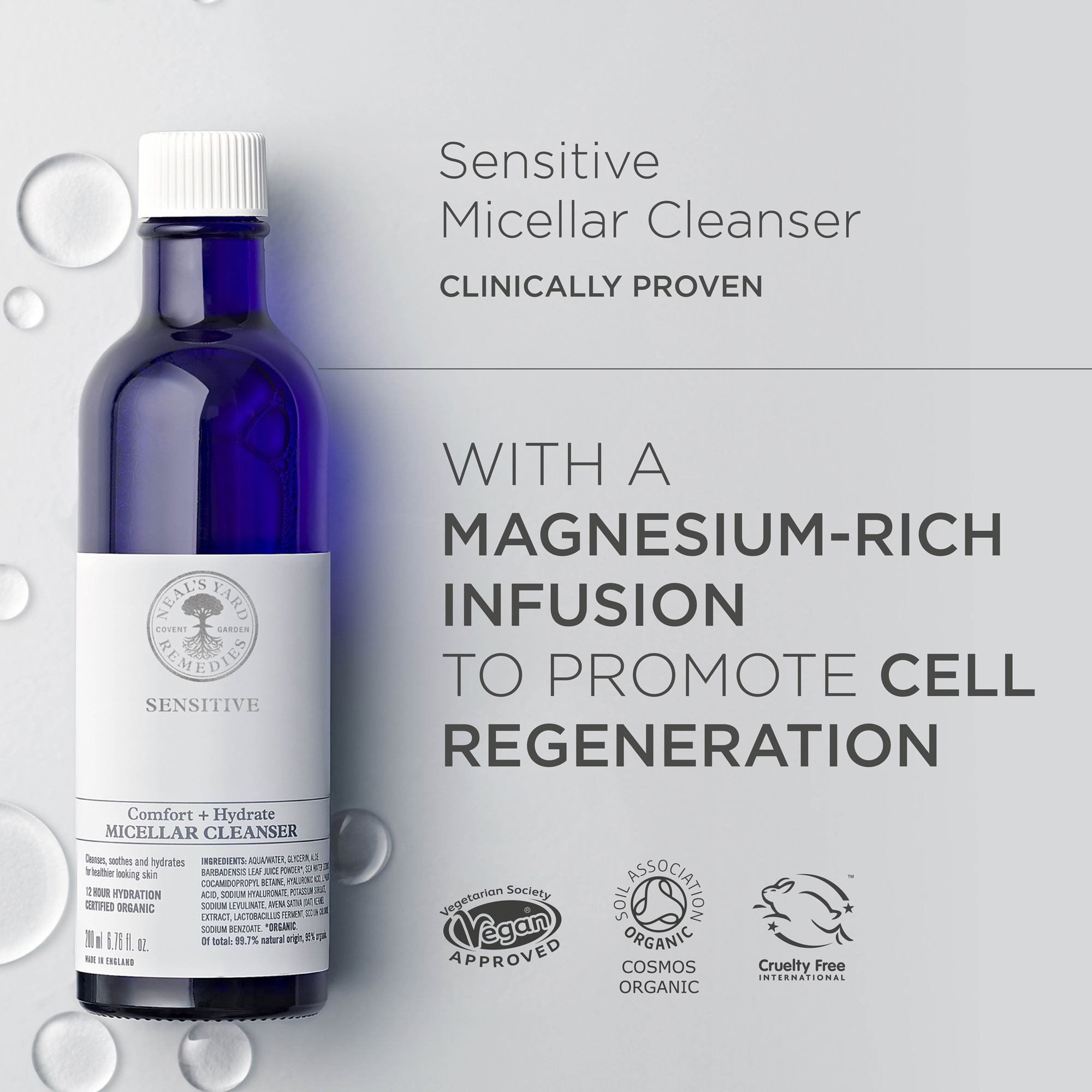 מנקה בעדינות, מרגיע ומעניק לחות. אורגני ונטול ריח לניקוי עור הפנים מזיהומים יומיומיים ואיפור.