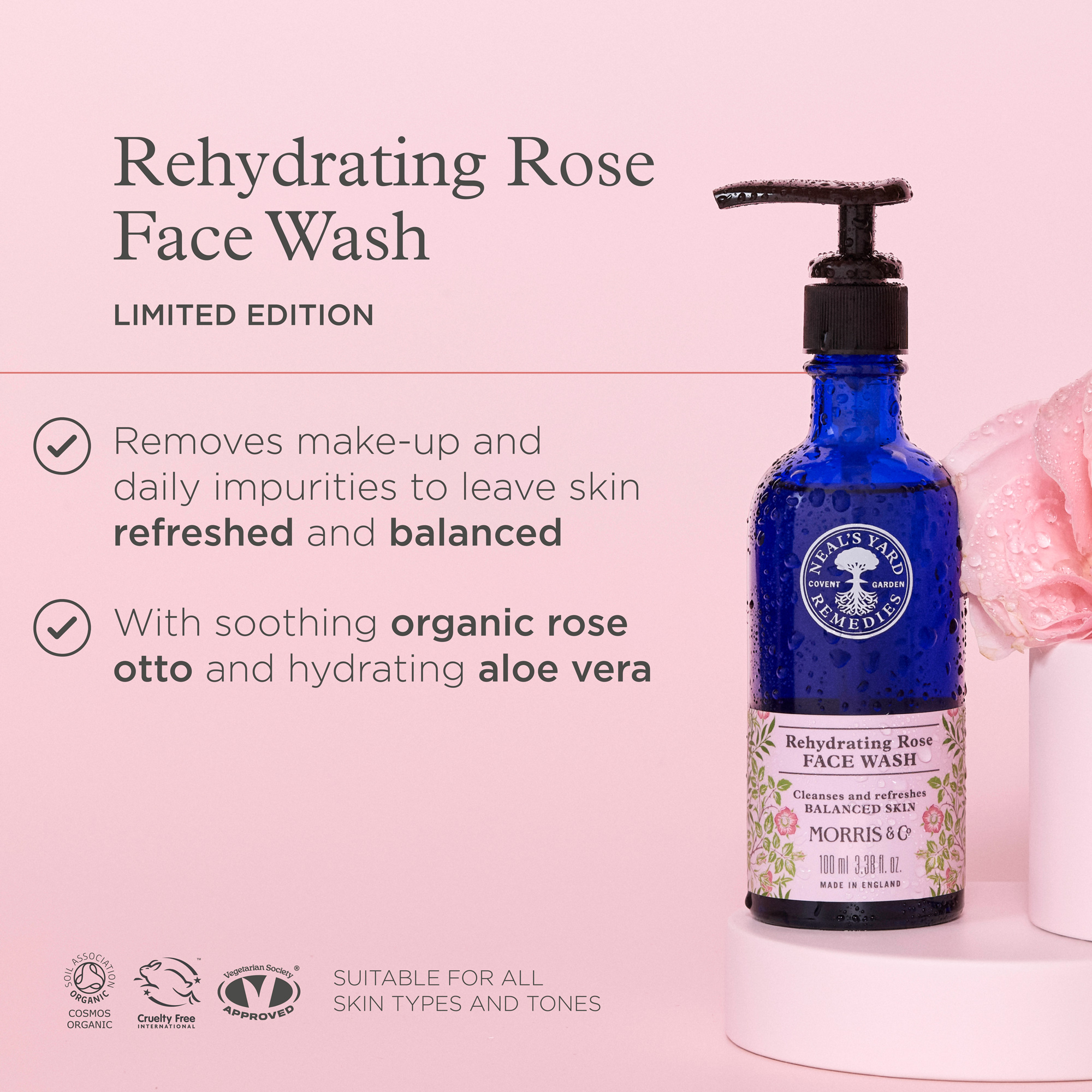 בסט סלר! ג’ל ניקוי עשיר מסדרת רוז לשימוש בסיס יומי המסייע בהסרת לכלוך, שאריות איפור ותאי עור מתים, מבלי לפגוע באיזון הטבעי של העור.